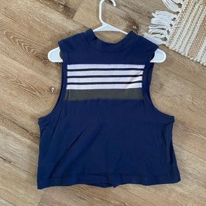 Navy top with white and gray stripes