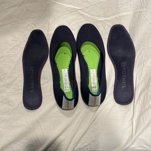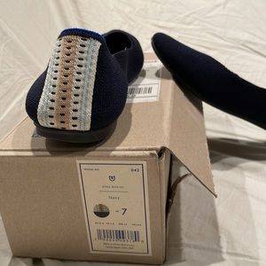 Navy Rothy’s with striped heel detail. GUC. Non-smoking, pet friendly home. Includes original box.
