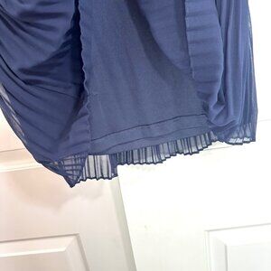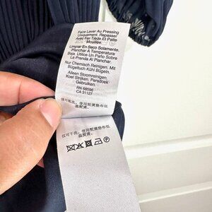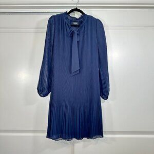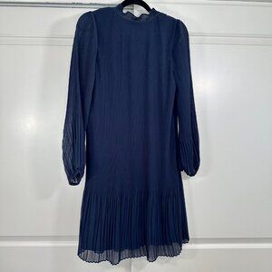 Navy Tie Neck Pleated Long Sleeve Dress 10