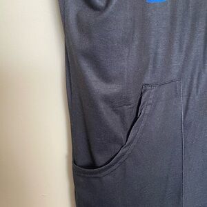 Navy V-neck dress featuring 'Grateful Thankful Blessed' in vibrant multicolor text. Stylish and versatile. This dress is new/ no tags and great for lounge wear too
