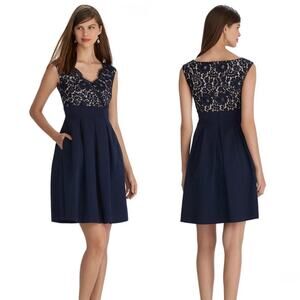 Navy WHBM Lace Midi Sleeveless Cocktail Dress with Pockets & fringe detail