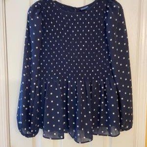 Navy & White Polka Dot Smocked Peplum Blouse