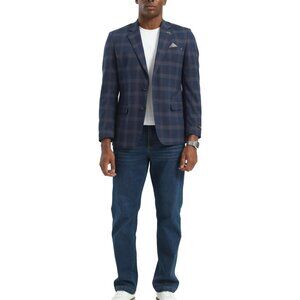 Navy Windowpane Check Notch Lapel Slim Fit Tazzio Men's Jacket