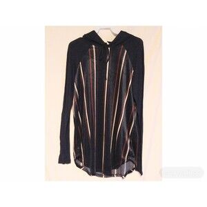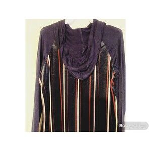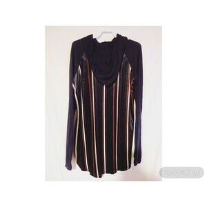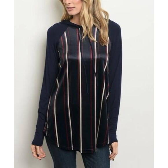 This navy wine blue striped hoodie top with long,casual raglan sleeves is so comfortable and warm. This hoodie is just in time for the cooler weather, perfect for layering up. Made of super soft material Made in the USA material 100%polyester Description: L: 29" B: 40" W: 42".Comes in Small,Medium and Large