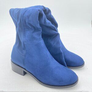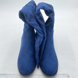 Navy Women Classic Block Low Heel Closed Toe Pull On Thigh Over The Thigh Boots