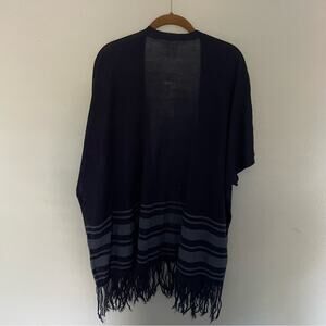 Navy Wrap Sweater Open Cardigan with Fringe Hem NWT