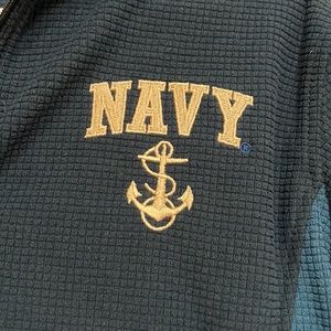 Never worn. Super soft. Navy zipup. Throw on and cheer on your favorite mid-shipman.