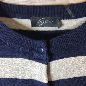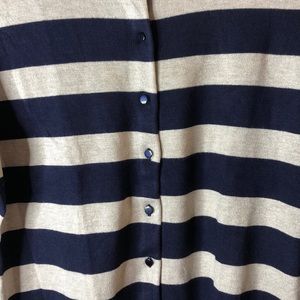 Navy and Cream Striped Cardigan L