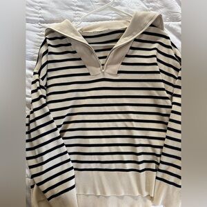 Navy and Cream Striped Quarter-Zip