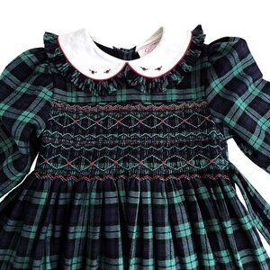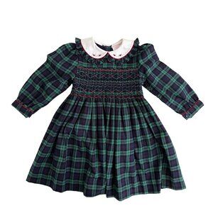Navy and Green Plaid Hand Smocked 2 Years Toddler Dress NWOT Vintage Sophie Dess