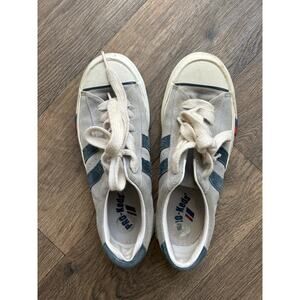 These Pro-Keds give that mid 2000's Twilight movie vibe. They are a sueded base in Navy, Grey, and white. They are low rise with a laces and a rounded toe. These are preowned and do have some wear. The P on the back of one of the shoes has fallen off.