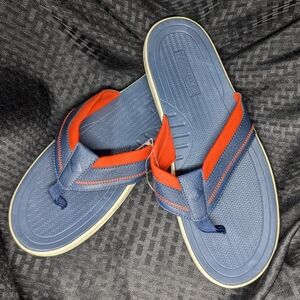 NWOT. Navy and Orange Sperry Havasu Sport Flip Flops.