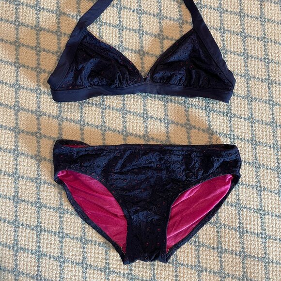 Size Large, Navy and Pink Bikini from Target. Very comfortable and good condition.