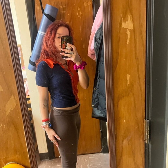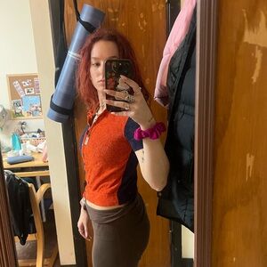 Navy and Red Button-Up Top