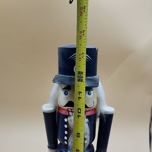 Navy and Red Nutcracker Figurine this is an older one and needs some TLC 13.5"