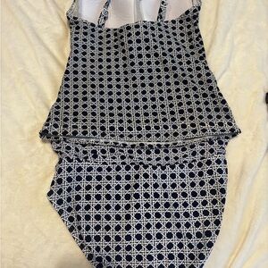Navy and White Basket Patterned Tankini Swimsuit Sz10