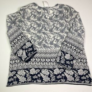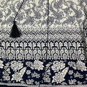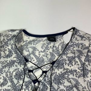 Navy and White Floral Women's Blouse