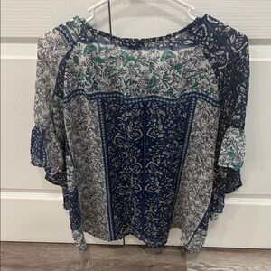 Discover elegance with this navy and white floral blouse. Perfect for any occasion, it adds a touch of sophistication to your wardrobe.