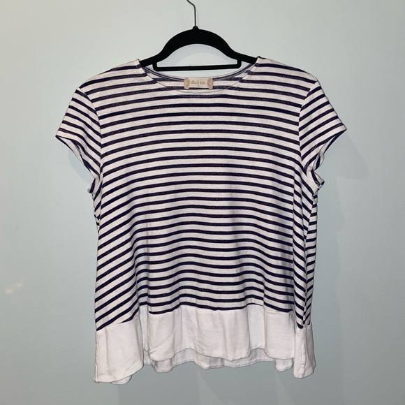 Navy and White striped/ White ruffle and bottom/ lightly worn