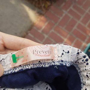 Navy and White Lace Prevett Strapless Dress L