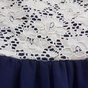 Chiffon navy blue dress with white lace top Size Large