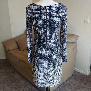 Navy and White Long Sleeved Shift Dress by Vince Camuto- Size 4