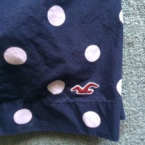 Navy and white polka dot hollister dress with matching belt. Has a hollister logo on the hem and a stretchy back.