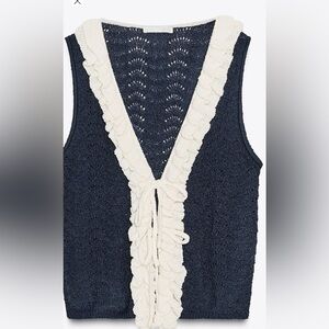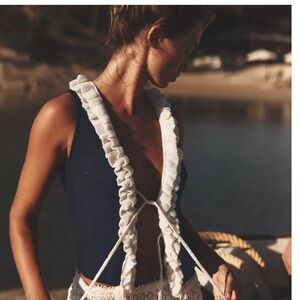 Stylish Top with navy and white ruffles. Perfect for beach days.