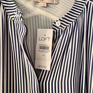 Loft navy and white striped dress with long sleeves and fully functioning buttons down the front. New with tags.
