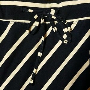 Navy and white stripe maxi skirt with tie waist. Stretchy material for comfortable fit! Adorable on especially with red or coral! Excellent condition.