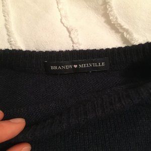 Navy sweater with double white stripes from Brandy Melville. One size, fits size small/medium. Lightly worn, in great condition!