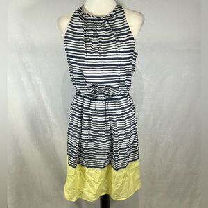 Navy and white striped yellow color block nautical dress size medium