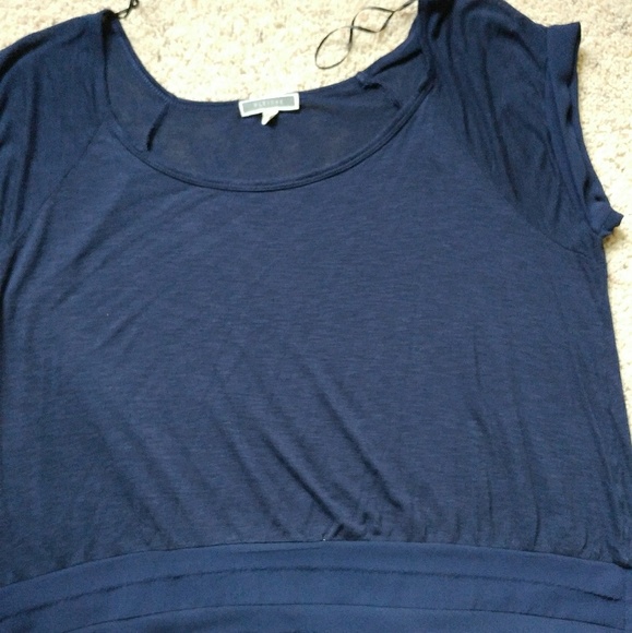 Lightweight navy blouse with adorable detailing on arms and around bottom. Adorable but runs large and is cut loose. Sized small run more like medium