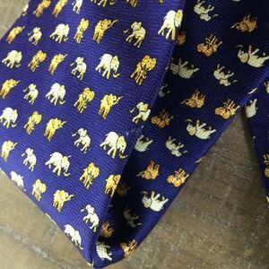 Navy blue 100% silk elephant tie classic whimsical made in Italy
