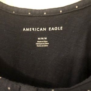 Navy blue crop top with white polka dots, detail buttons down the front, 100% cotton. Worn once!