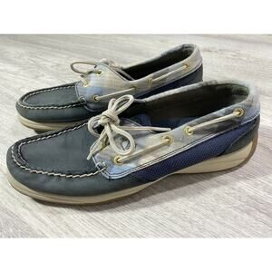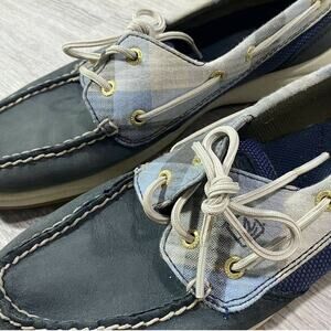 Navy blue Sperry Top-Sider loafers shoes 7M plaid Leather Upper