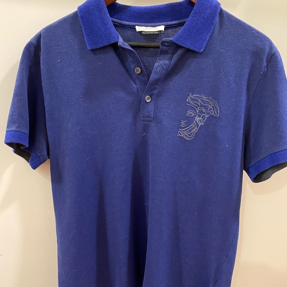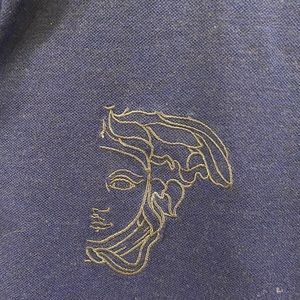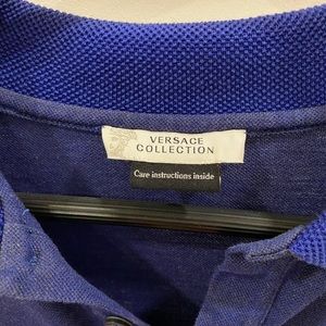 Boyfriend is doing a bit “spring cleaning” and found this item in the back. It’s a navy blue two toned Versace shirt. Like new just a little dust. No wear and tear. It’a a pretty old shirt so we cut the price.