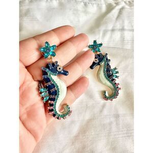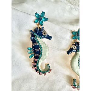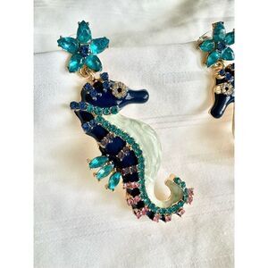Navy blue and rhinestone seahorse dangle earrings