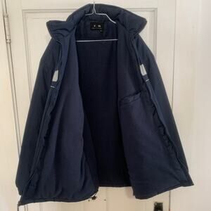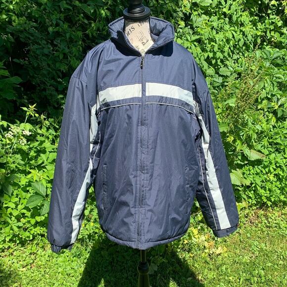Navy blue and silver Fleece lined Zip up jacket with hide away hood