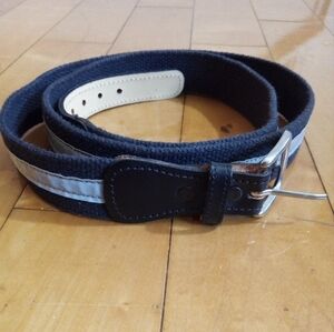 Navy blue canvas belt with silver reflective stripe and leather detail size 42XL