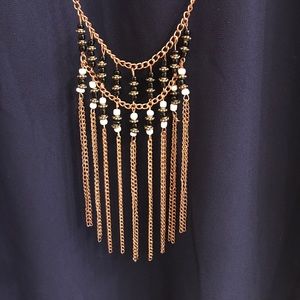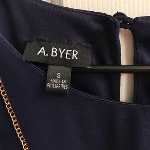 Very casual navy blue dress with necklace attached! Have buttons on the the cuffs of the sleeves. Sleeves are open in the shoulders and forearms!