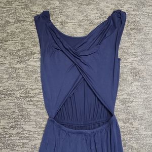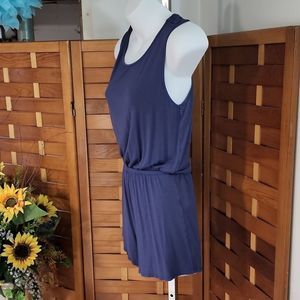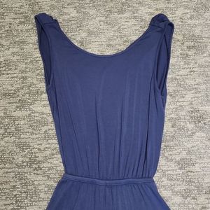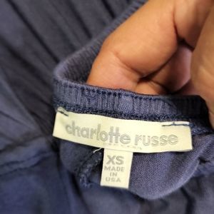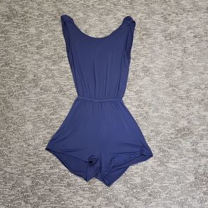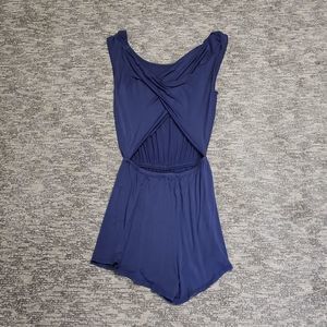 Charolette Russe brand Navy blue cotton blend shorts romper. very cute and comfortable. Size XS. measurements are 16 in across the chest and 28 inches in length from shoulder straps to hem. banded waistline. open back design. very good pre owned condition