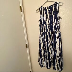 Navy blue print stretch v neck wrap midi summer sleeveless dress M NEW