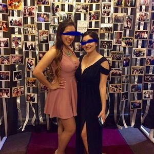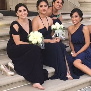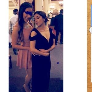 Low cut, low back, slit down the front. Great for a holiday party or formal party. Only worn once.
