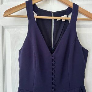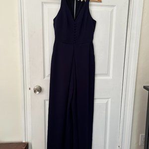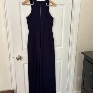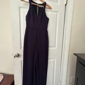 Perfect for a bridesmaid, wedding guest, or formal event! Flattering cut with draped fabric legs, keyhole neckline and halter top, accent buttons on the front bodice. Labeled size XS but could fit up to a 4. Worn once, pristine used condition.