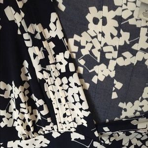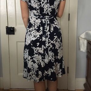 Navy not black dress. Worn one time, in like new condition. Fabric is bouncy, somewhat stretchy. 95% polyester, 5% spandex. Tag reads XS but is closer to Size S and could fit XS-M.