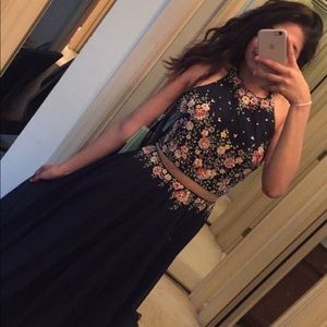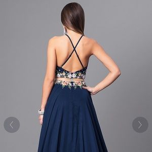 Navy embroidered two piece formal gown
