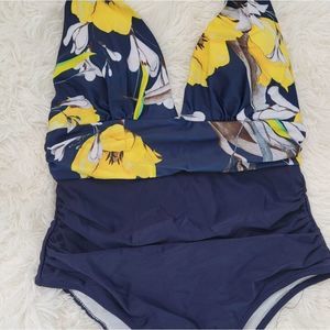 Navy floral deep v-neck backless women monokini one-piece sexy halter #16