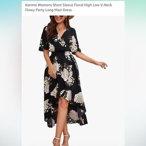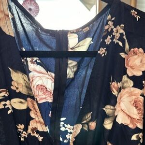 Navy/ floral pink, green v neck flowy high low summer/spring dress plus 2X