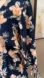 Gorgeous navy floral print culotte jumpsuit features a surplice front. It’s a deep v neckline. Elasticized Waist. 3/4 sleeves with ties. Back button closure. Bottom is partially lined. Quality rayon. Made in the USA.
